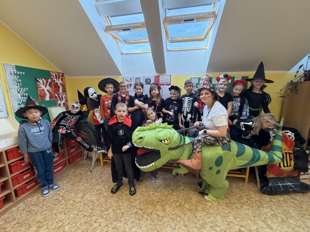 strašidel a spousty zábavy! Celá škola se proměnila v halloweenské království plné kostýmů, dýní, pavučin a kouzel.